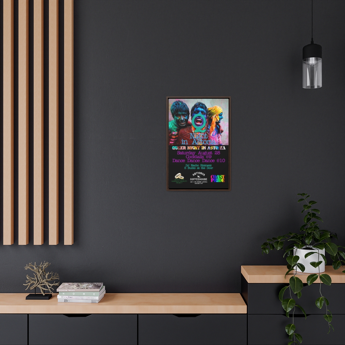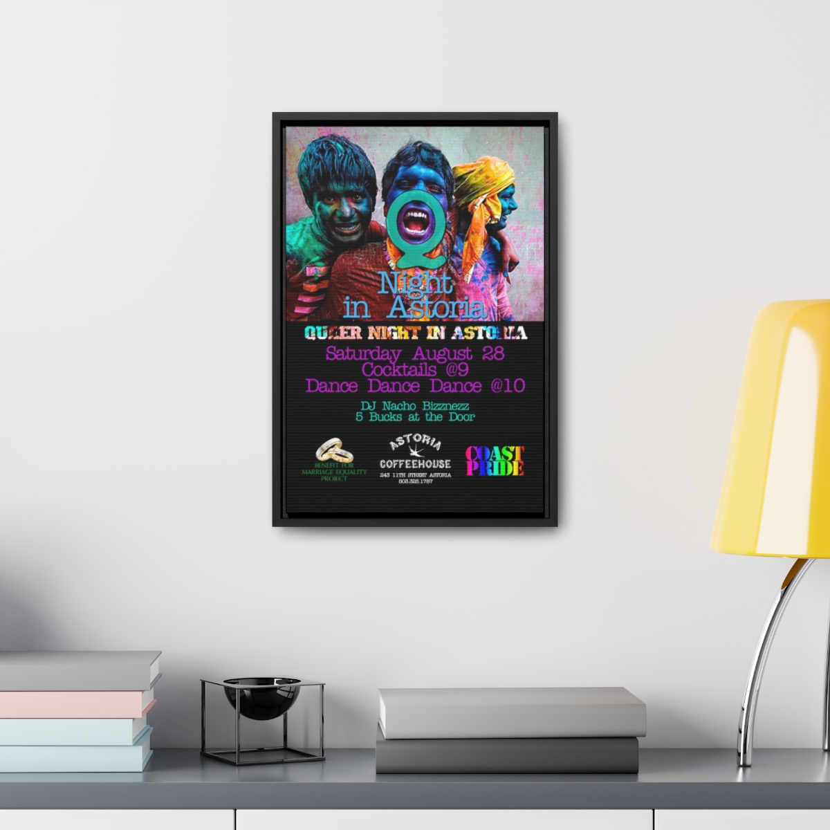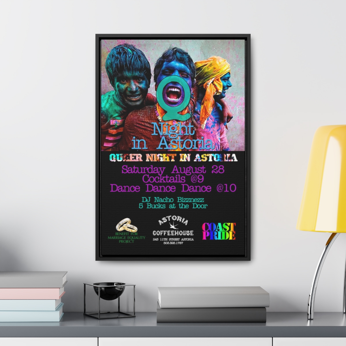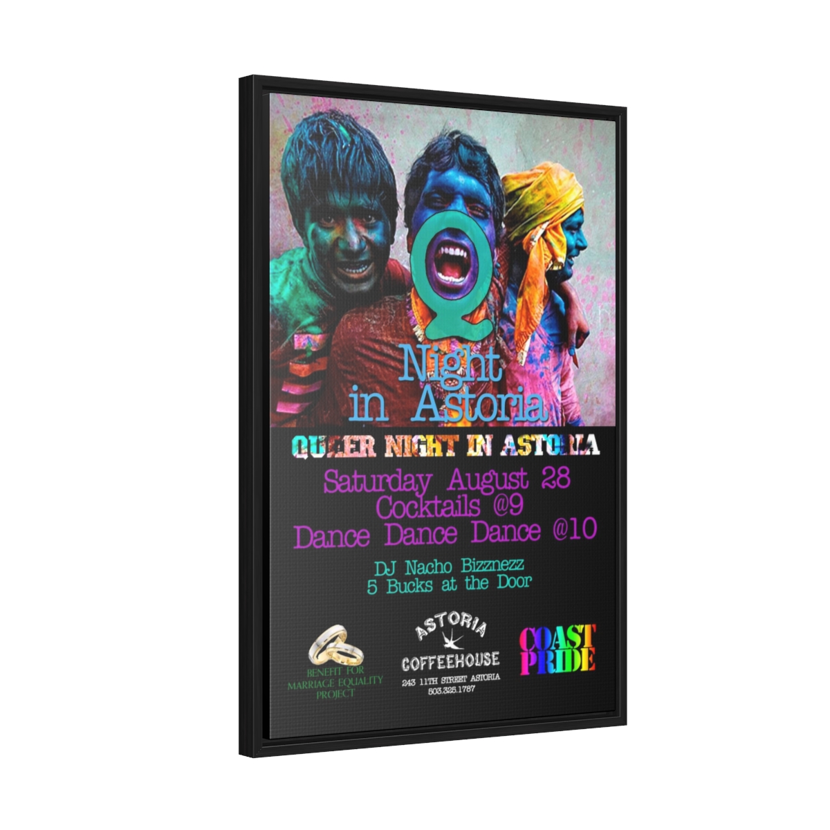 The poster for Q Night in Astoria Benefit for Marriage Equality Project held at Astoria Coffeehouse & Bistro in Astora, Oregon on August 28, 2010 created by Scott Docherty.