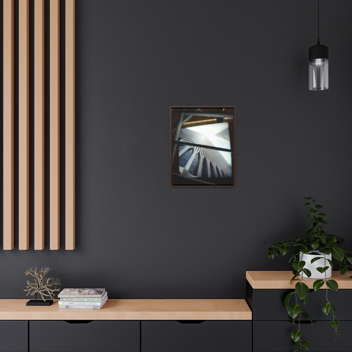 “Reflections of 9/11 #1” A photo from the 9/11 Memorial and Museum shortly before opening, September 2014 by Scott Docherty. This vertical gallery wrapped canvas print will always look as tight and flat as the day it was made. Every frame is built with a solid face to support the canvas and prevent deforming. Available in multiple sizes, comes in walnut and black frame options.
