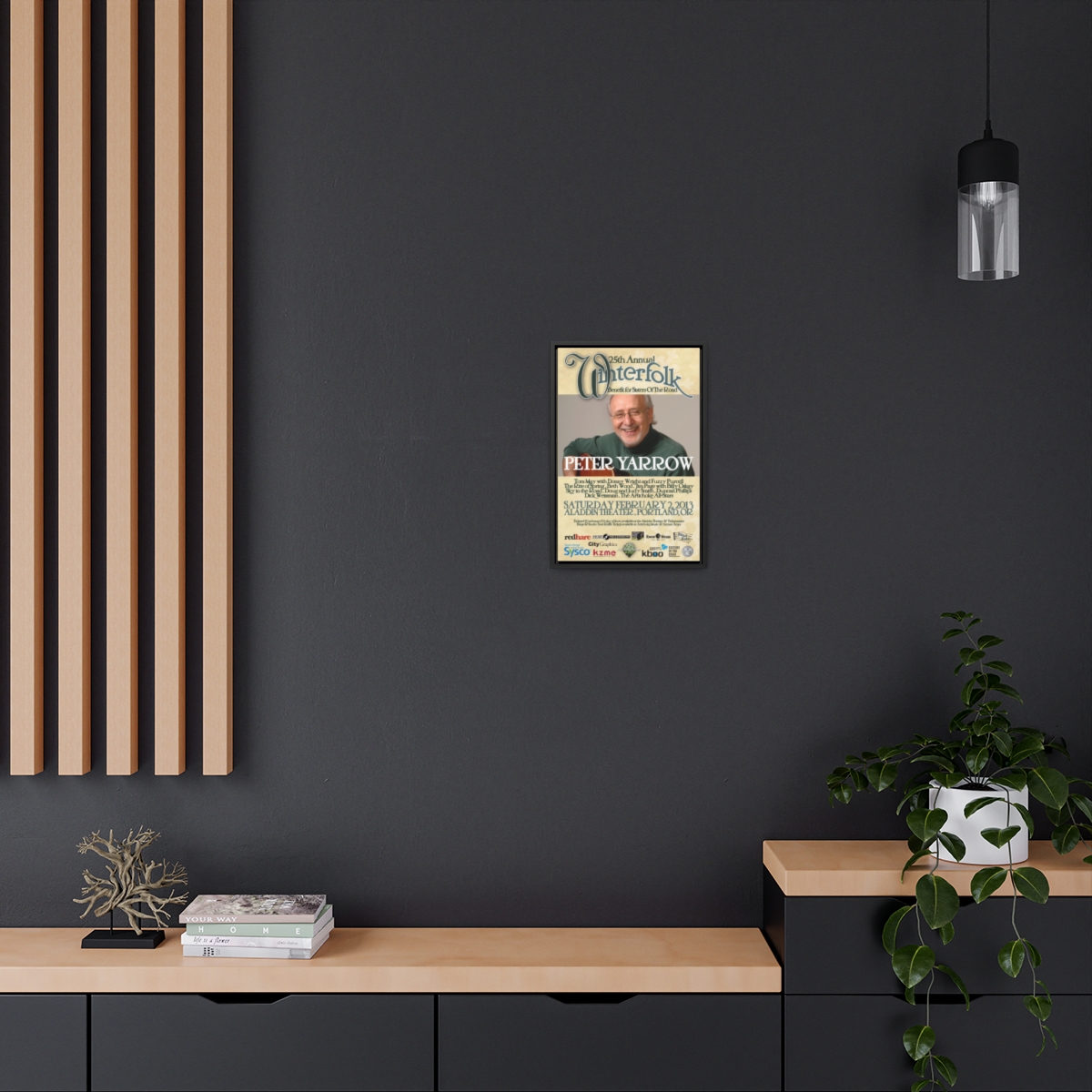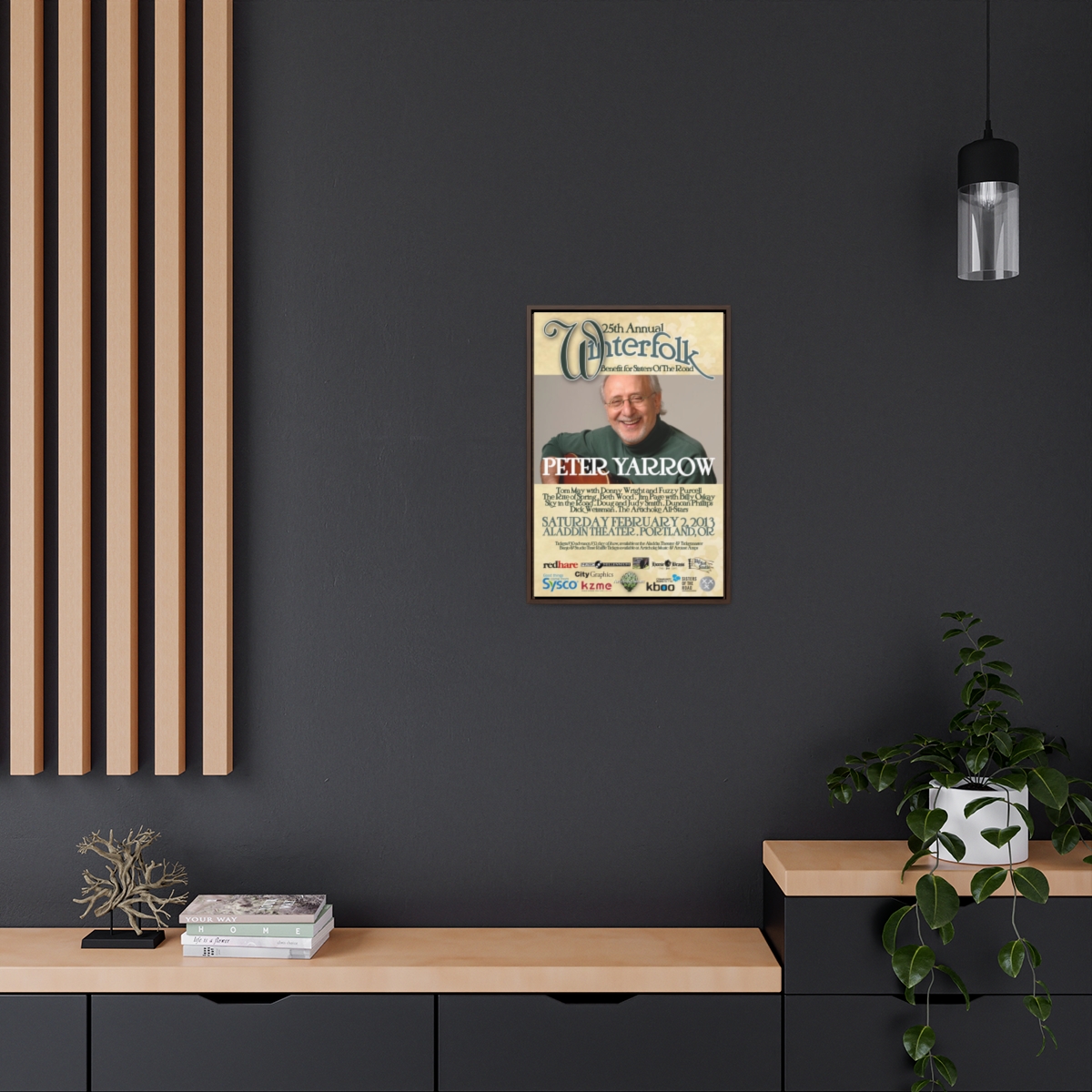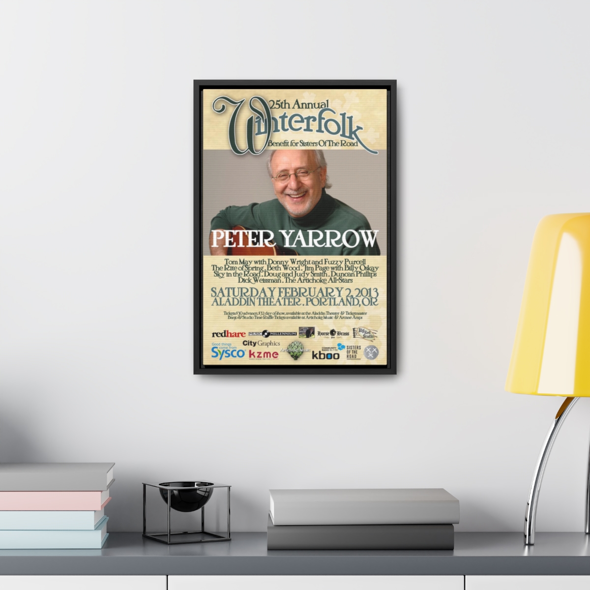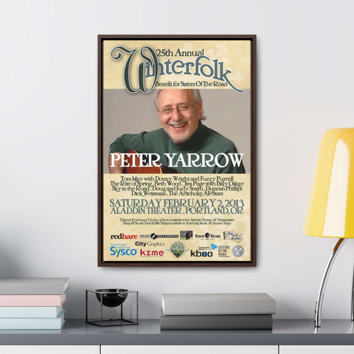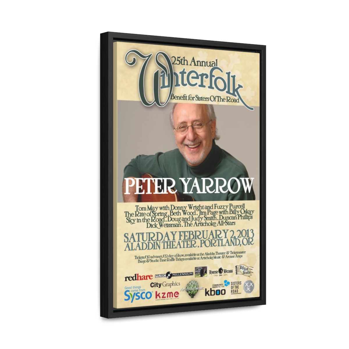 The official poster for the 25th annual Winterfolk Benefit, starring Peter Yarrow, held at the Aladdin Theater in Portland, Oregon on February 2, 2013 created by Scott Docherty.