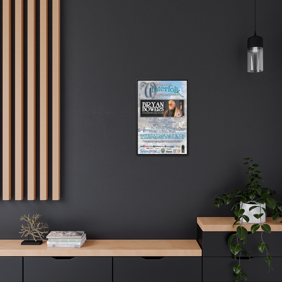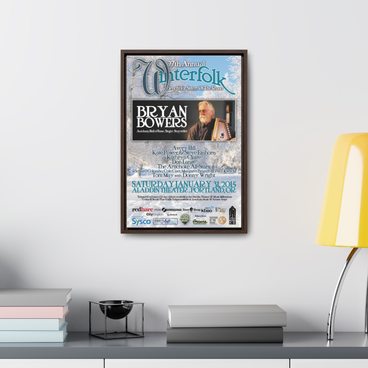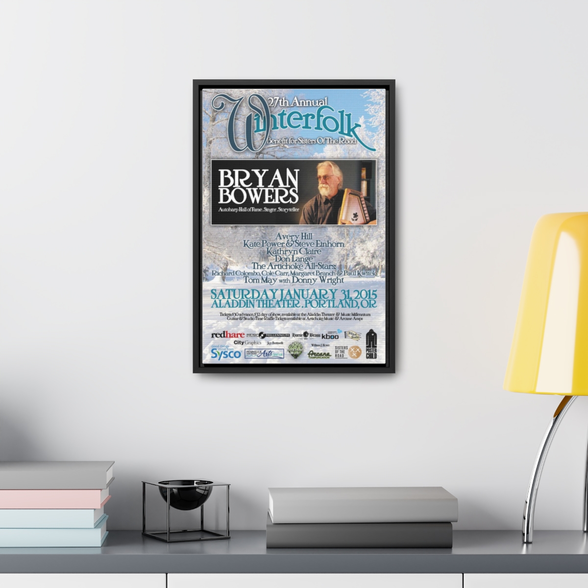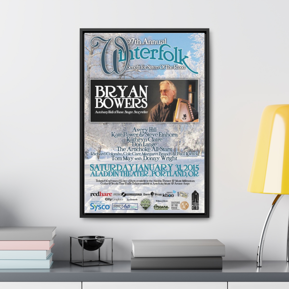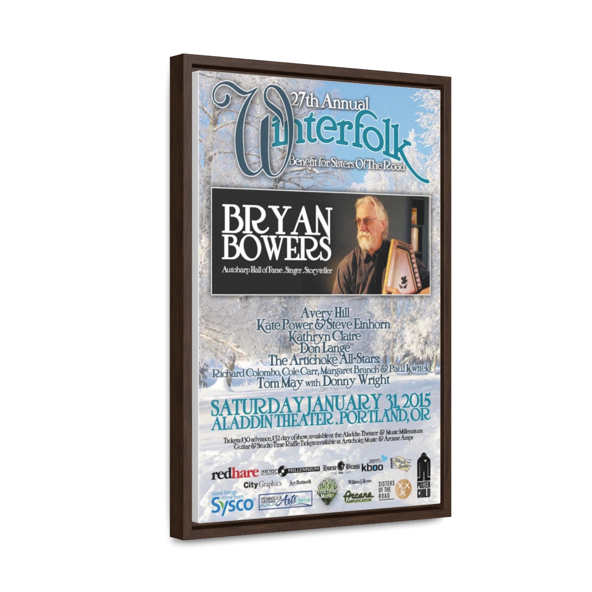 The official poster for the 27th annual Winterfolk Benefit, starring Bryan Bowers, held at the Aladdin Theater in Portland, Oregon on January 31, 2015 created by Scott Docherty.