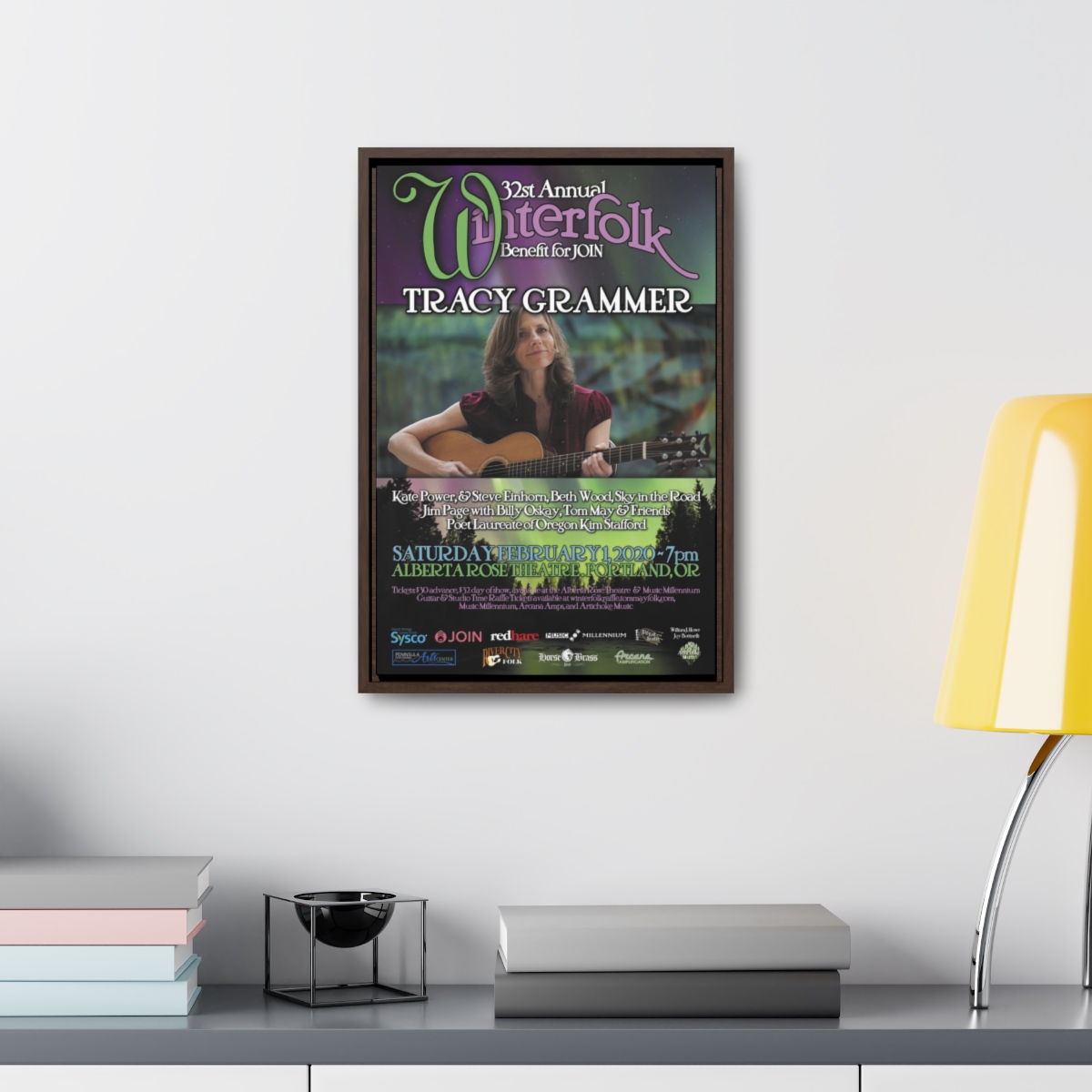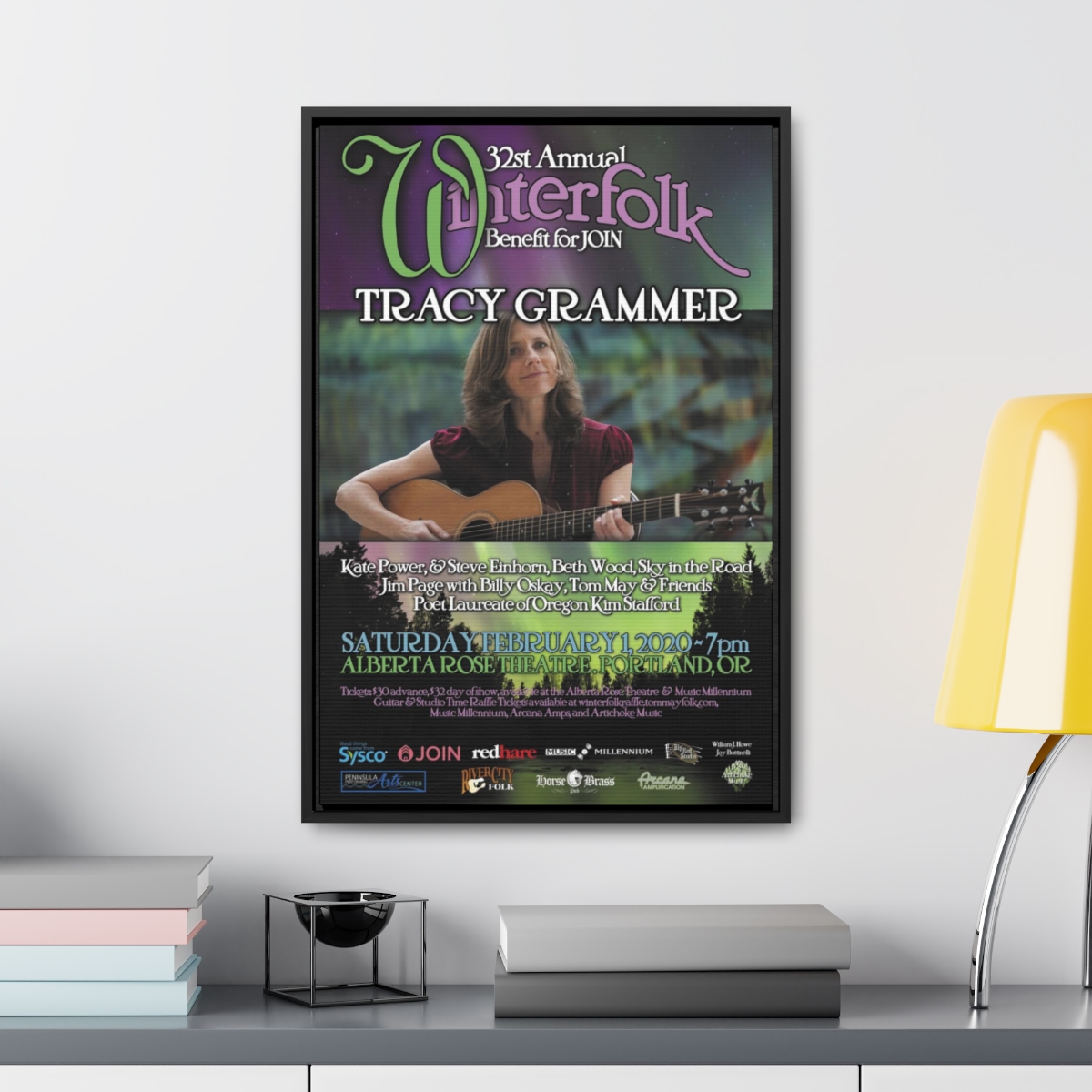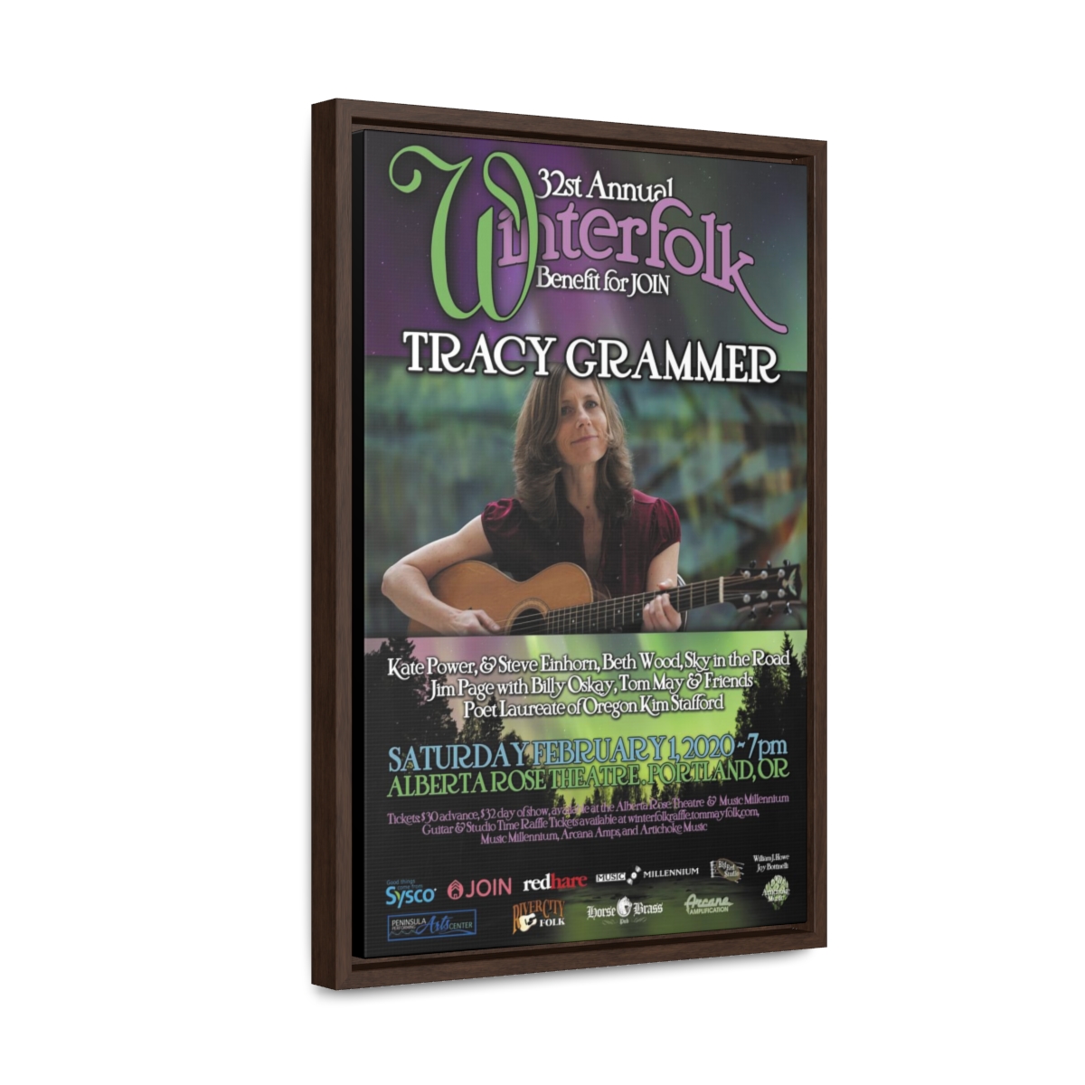The official poster for the 32nd annual Winterfolk Benefit, starring Tracy Grammer, held at the Alberta Rose Theatre in Portland, Oregon on February 1, 2020 created by Scott Docherty.