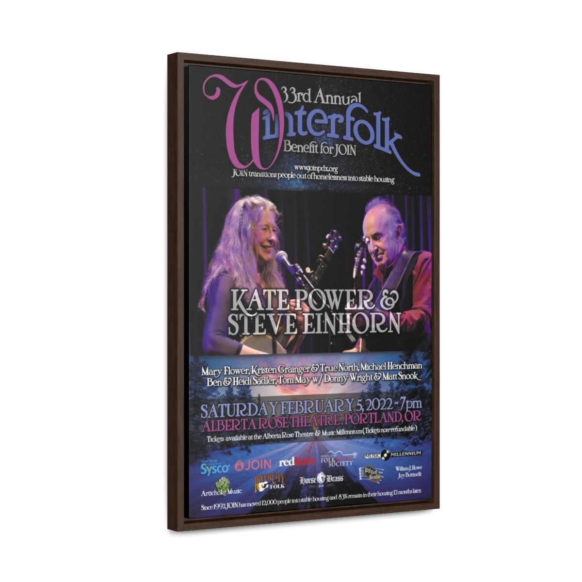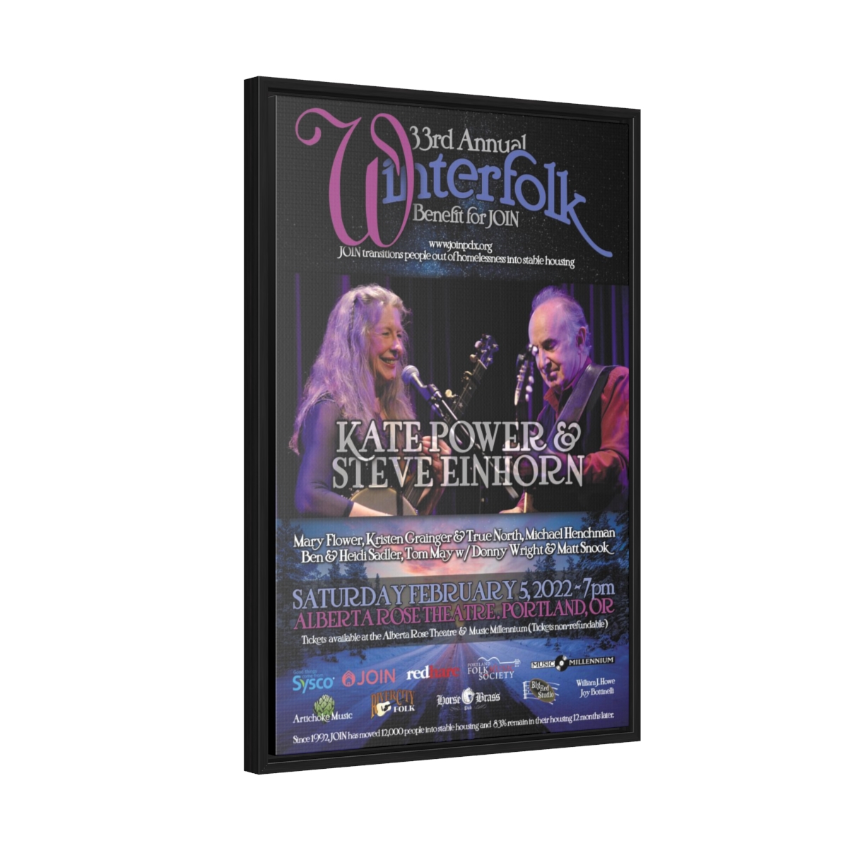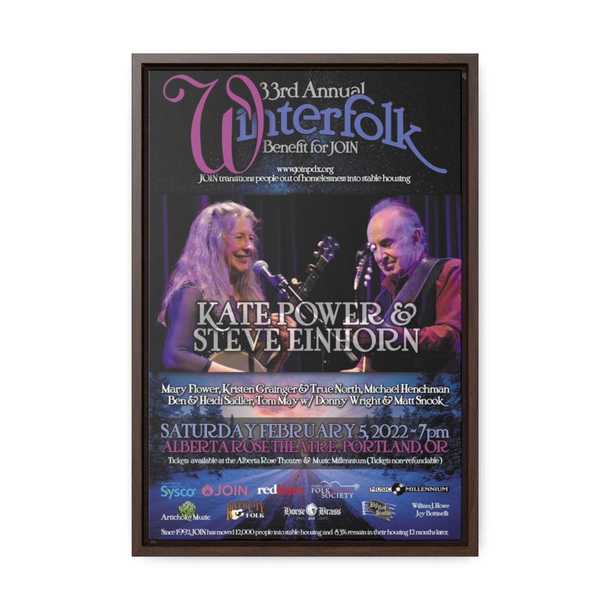 The official poster for the 33rd annual Winterfolk Benefit, starring Kate Power & Steve Einhorn, held at the Alberta Rose Theatre in Portland, Oregon on February 5, 2022 created by Scott Docherty.