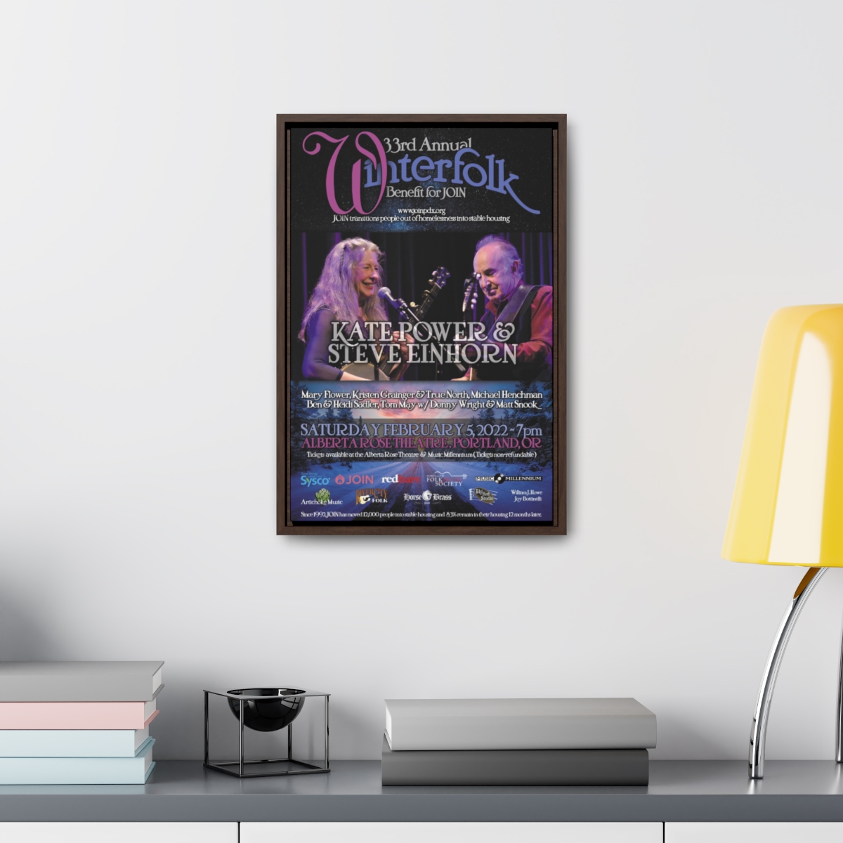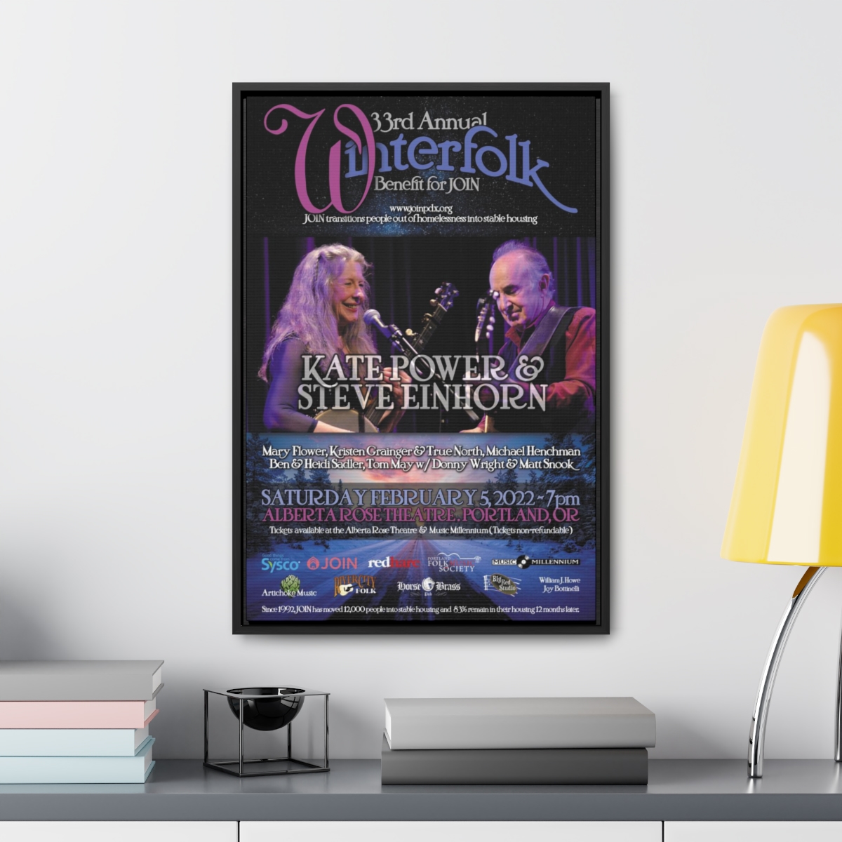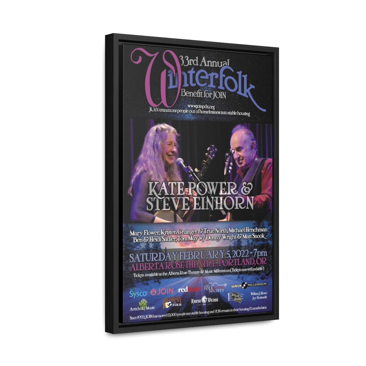 The official poster for the 33rd annual Winterfolk Benefit, starring Kate Power & Steve Einhorn, held at the Alberta Rose Theatre in Portland, Oregon on February 5, 2022 created by Scott Docherty.